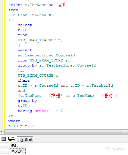 8、获得同时教“物理”和“语文”的老师姓名