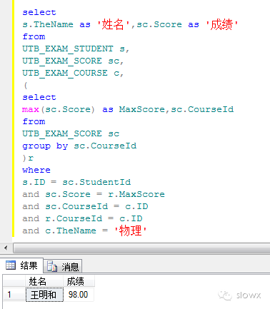 9、获得“物理”考试最高分的学生(考虑多个学生记录的情况)