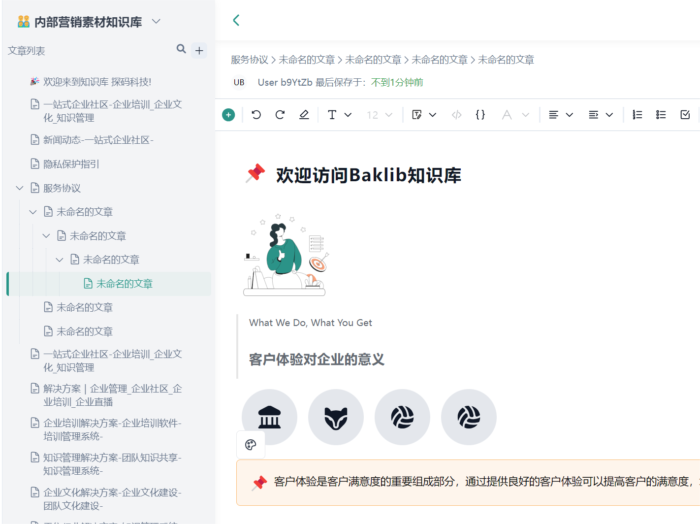 Baklib不仅仅是一个帮助创作工具,它允许您快速轻松地创建帮助文档、产品文档、说明手册、用户手册和常见问题解答。一旦您注册了帐户,用户友好的界面就可以立即让您使用。