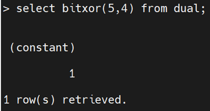 BITXOR(A,B) | 数值 | 按二进制位【异或】运算,一1一0为1,否则为0 |
