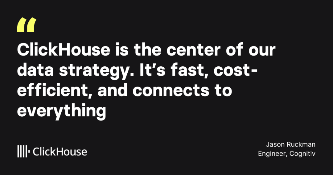 事实证明,他是对的。ClickHouse 能够高效地处理以前需要数小时甚至数天才能完成的查询。这对 Cognitiv 的数据团队来说非常有价值,使他们能够快速迭代和改进机器学习模型。团队对 ClickHouse 即使在数据量增加时仍能保持高性能印象深刻。