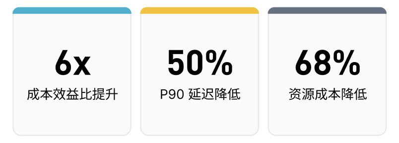 迁移到 StarRocks 后,p90 延迟减少了 50%,仅需原先设置的 32% 实例。这导致了成本性能效率提高了 6 倍。数据摄取过程也得到了简化,实现了仅 10 秒的数据新鲜度。