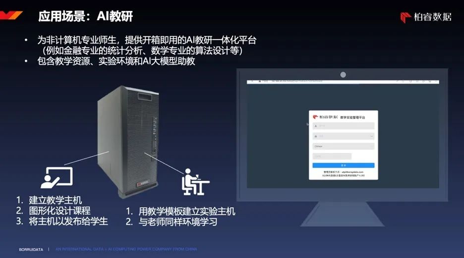 AI智算一体机在AI教研领域的应用,提供了一个开箱即用的综合平台,特别适合非计算机专业的师生。