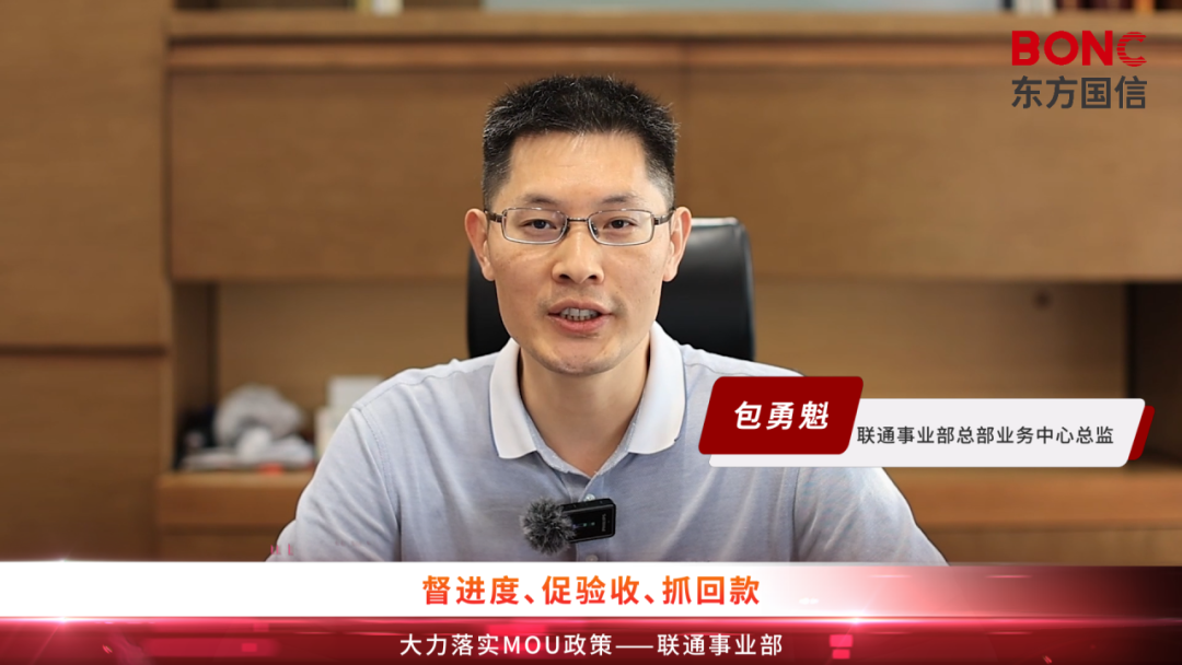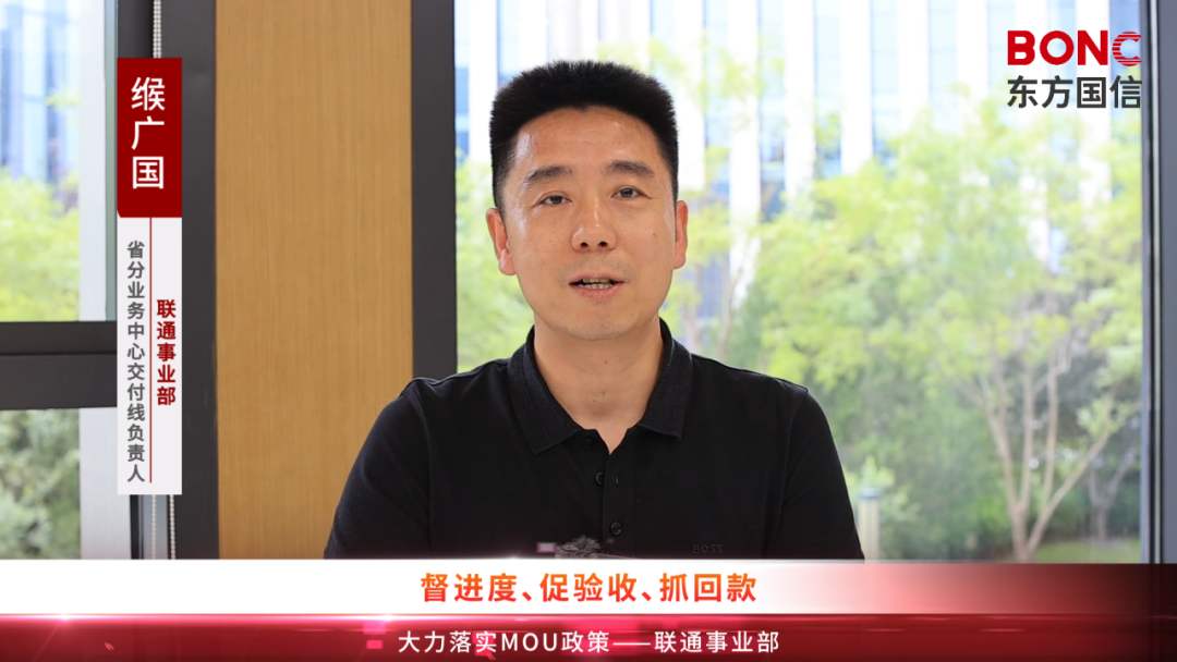 东方国信联通事业部河北&山东联通项目组高铭瑞表示项目组积极响应并遵循公司MOU的管理政策,在项目进度、里程碑验收和回款工作均取得了明显的成效。