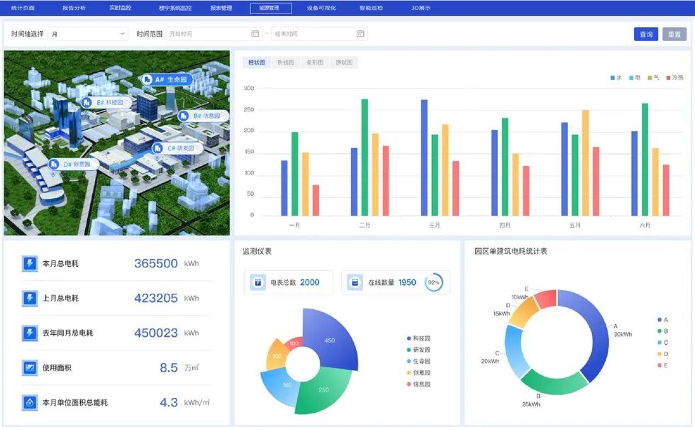 多维度能源统计:对能源消耗、计量、流向等不同层级数据进行综合统计,清晰快捷;
