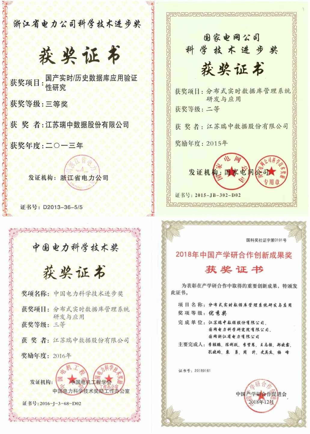 海迅实时数据库的部分获奖证书