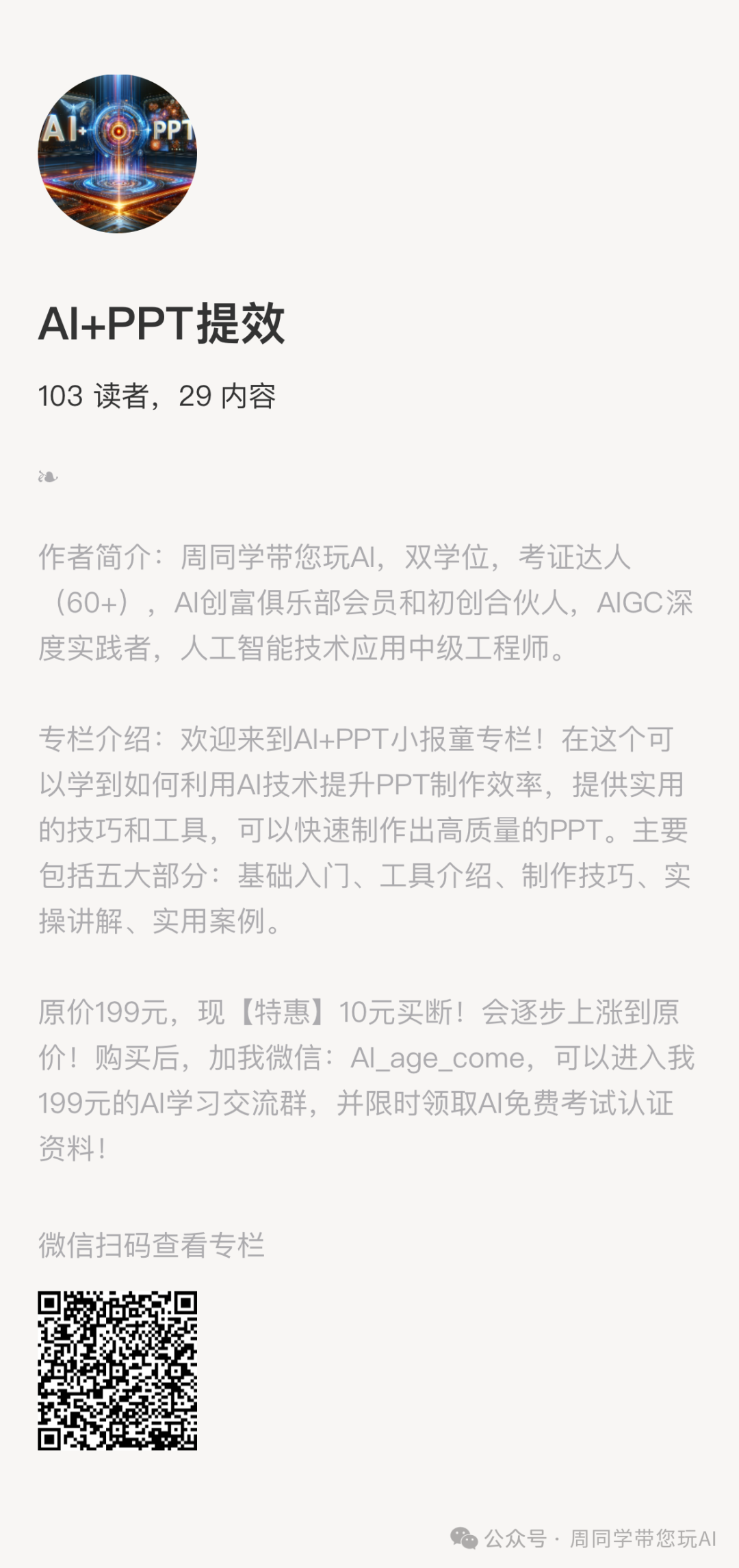 全网第一个AI+PPT提效小册希望能对大家有帮助订阅之后有专属学习交流群 以及AI考试资料分享