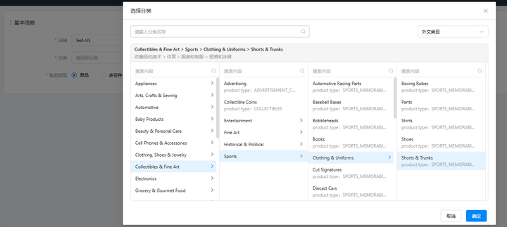 类目选择,看着蛮简单的,赛狐自己做了中文翻译。