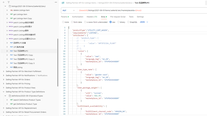 我们重点关注的是putListingsItem接口,json怎么传才是关键。