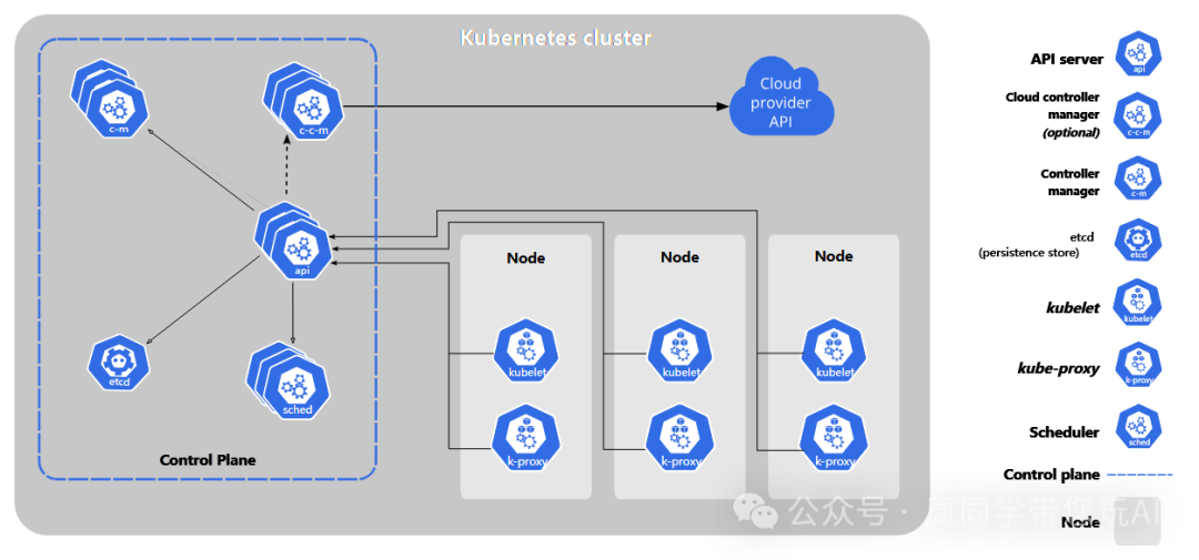 功能:Controller Manager运行集群中所有控制器的逻辑,这些控制器负责监控集群状态并进行相应的调整。 技术原理:控制器是一种循环机制,不断监视集群的实际状态和期望状态之间的差异,并通过API Server做出相应调整。 应用场景:确保部署的Pod数量、状态、配置等达到预期,如ReplicaSet控制器保证副本数量,Node控制器监控节点状态等。 Cloud Controller Manager(c-c-m)