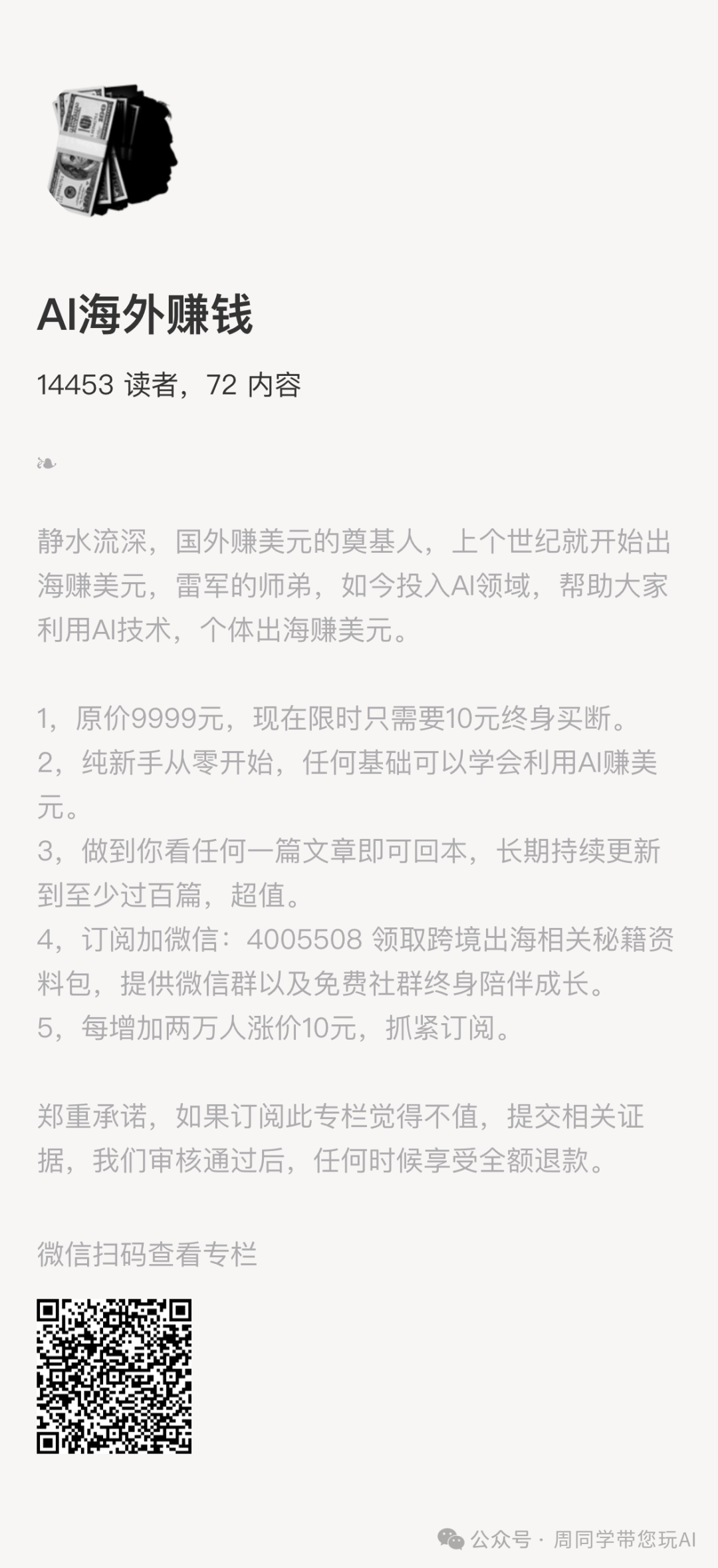 对AI出海、AI工具、AI提效感兴趣的小伙伴可以看看以下几个小报童,订阅之后都有专属的AI学习交流群。