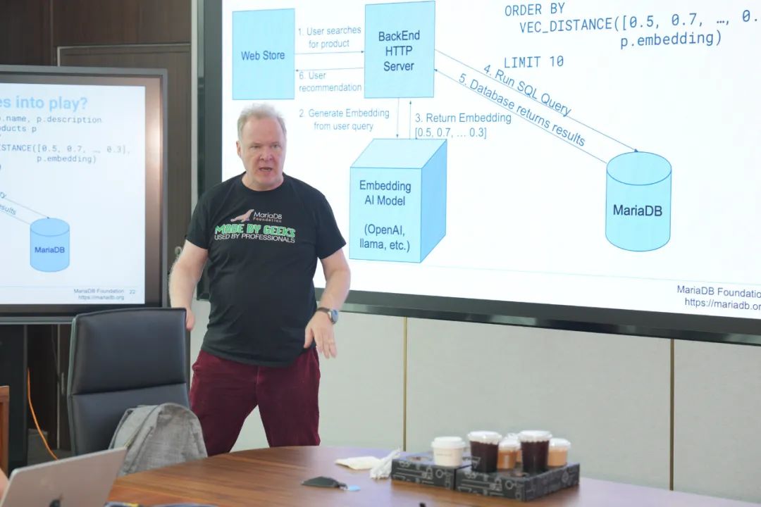 基于Sysbench基准测试工具,在数据库联机交易的读写比例为9:1的情况下,数据库性能实测数据显示,浪潮商用机器关键计算服务器每核心性能是x86平台每核心性能的4.22倍。这意味着用户数据中心需要更少的处理器核心,在提供相同或者更多计算能力的情况下,电力能源消耗更少,更低碳环保。在当前人工智能加速发展的背景下,数据库结合AI大模型是IT架构演进趋势,MariaDB将在后续新版本中增加向量字段,浪潮商用机器关键计算服务器搭载的新一代处理器内置MMA矩阵加速单元,在数据库侧即可运行各种传统推理和生成式AI推理,通过RAG+矢量数据库外挂企业行业数据和知识运行各种AI大模型,构建行业AI推理,简化AI解决方案堆栈架构,能够按照需求在需要的地方“就地”进行AI运算,从而降低AI推理的成本和复杂性。浪潮商用机器关键计算服务器CPU多线程、高内存带宽、高IO特性,卓越的性能优势令Monty惊叹,作为开源数据库领域的领导者,MariaDB用户下载量超过10亿次,市场前景广阔。未来,双方将就联合方案打造、更多行业客户案例落地、开拓海外市场等方面展开更加深入的沟通和交流。