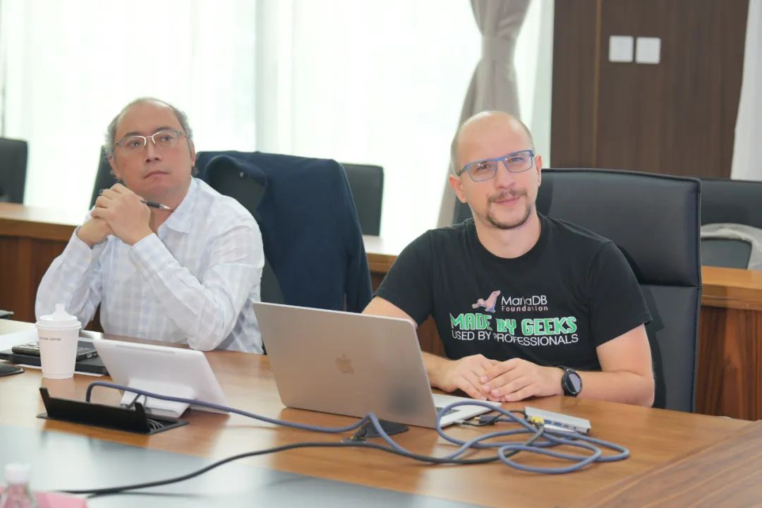2024年8月,MySQL之父,MariaDB创始人兼CTO Mr. Michael “Monty” Widenius携技术工程师团队及中国区团队到访浪潮商用机器有限公司。浪潮商用机器副总经理许倩出席活动。许倩总指出,MariaDB是业界主流的关系型数据库企业,浪潮商用机器关键计算服务器是数据库原生平台,“三高一强”特性为数据库提供强力支持,MariaDB产品覆盖超过10亿用户,为双方未来深度合作、开拓国际市场提供了广阔的空间。最新落成的智算创新中心展厅集演示、互动于一体,以沉浸式体验生动展示了算力、算法等全球领先的科技发展成果,极具科技感和未来感,收获了到访嘉宾一行人的一致好评。