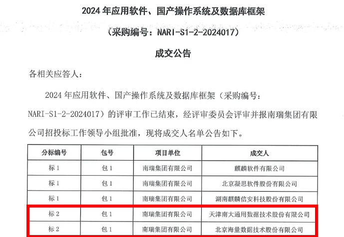 近日,北京海量数据技术股份有限公司与天津南大通用数据技术股份有限公司,凭借其在数据库领域的深厚积累与技术创新,成功中标南瑞集团有限公司的2024年数据库框架。此次中标,不仅彰显了南大通用与海量数据在数据库市场中的强劲竞争力,也标志着基于openGauss版本的数据库产品在国内大型企业集团中的广泛应用与高度认可。