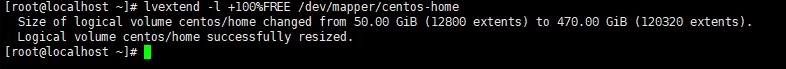 lvextend -l +100%FREE /dev/mapper/centos-home