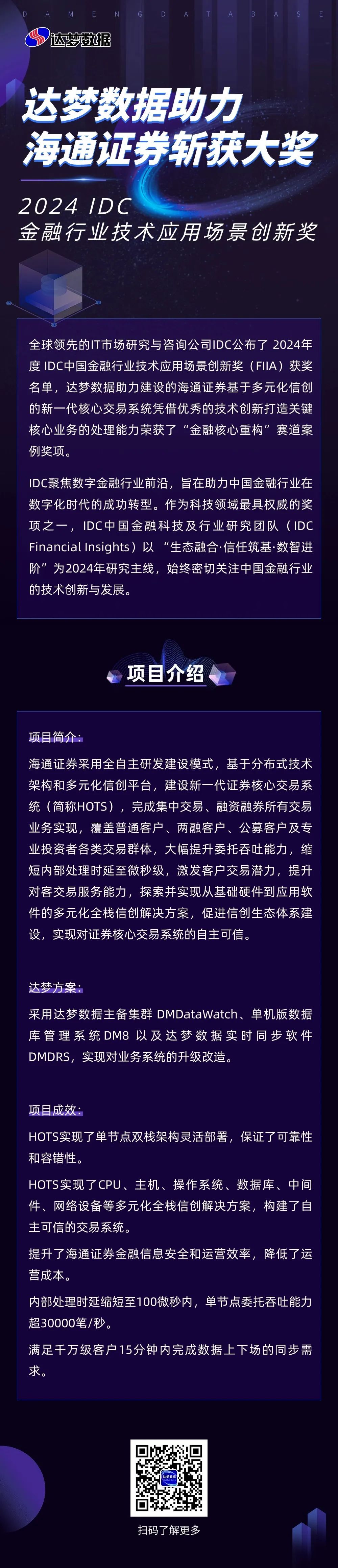 达梦数据助力海通证券斩获IDC金融行业技术应用场景创新奖