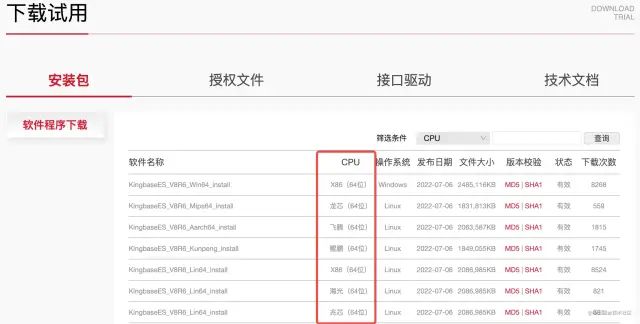 金仓数据库管理系统KingbaseES支持X86、X86_64,同时支持龙芯、飞腾等国产CPU硬件体系结构。