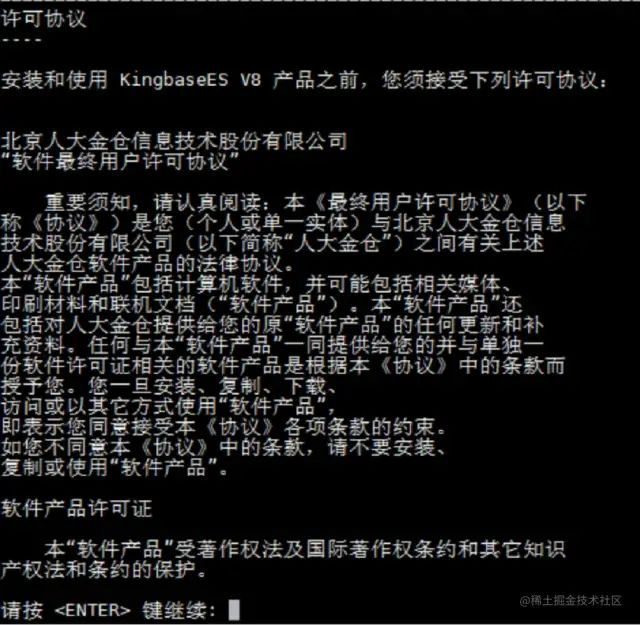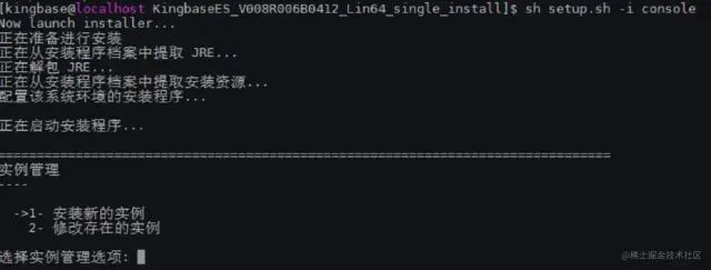 然后打开新终端,进入安装程序所在目录,以kingbase用户执行如下命令: