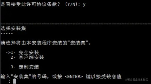 输入 N(不分大小写)表示不接受此许可协议条款,输入其他无效。