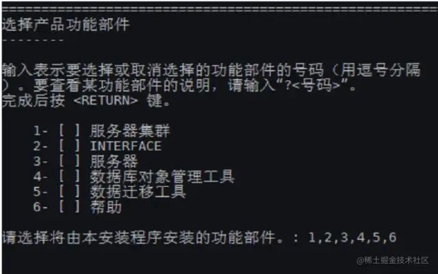 输入选择安装的功能部件的序号,并以逗号分隔。