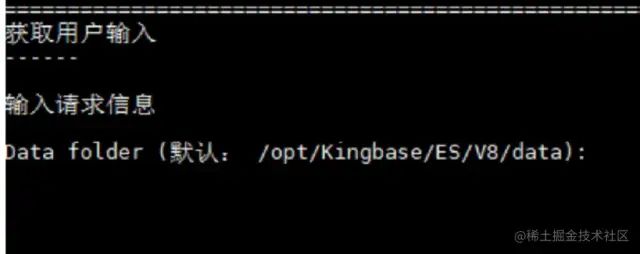输入数据库数据目录,默认数据库数据目录为:/opt/Kingbase/ES/V8/data
