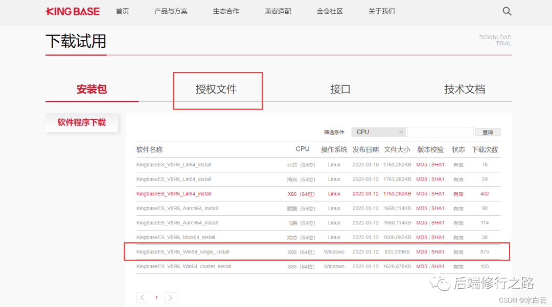 前往人大金仓官网(https://bbs.kingbase.com.cn/)进行下载