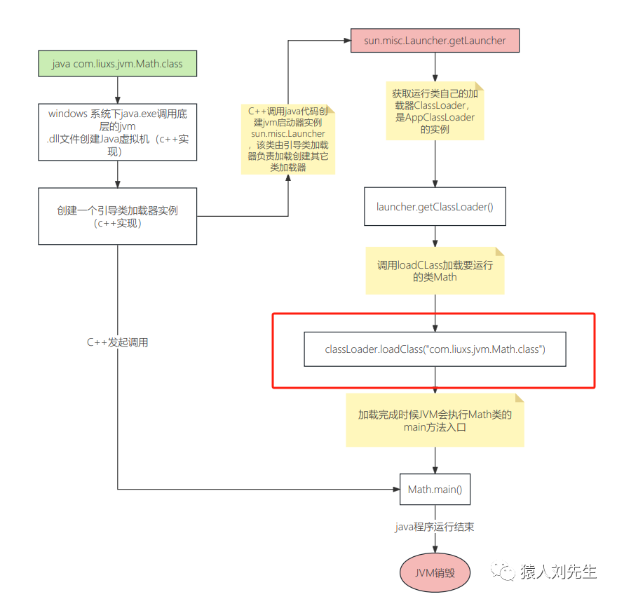 生成了一个path,比如name是com.liuxs.jvm.Math,然后替换之后是com/liuxs/jvm/Math.class,然后ucp.getResource去target下面根据这个path找对应的class文件装载到jvm内存中,装载的过程就是defineClass方法.....