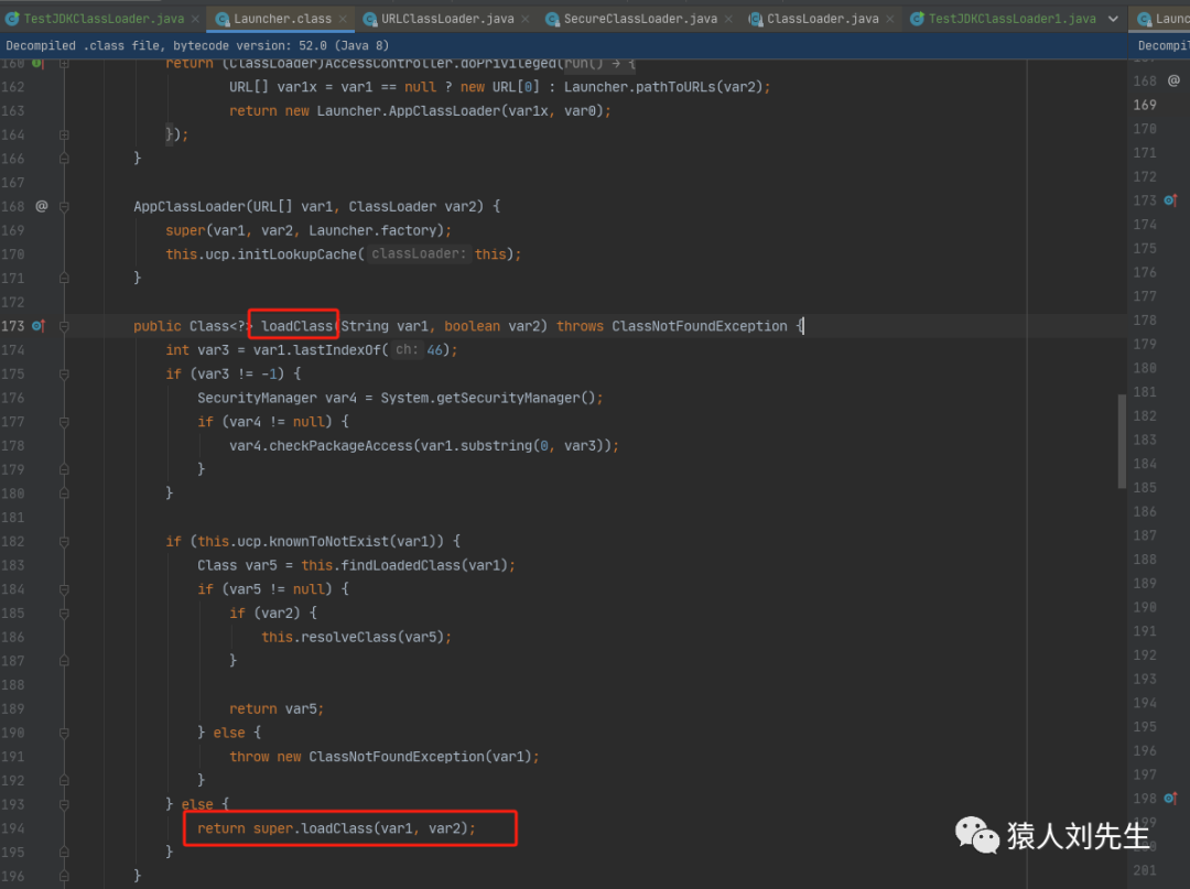 AppClassLoader是Launcher类中的一个内部类,AppClassLoader.loadClass()它会调用super.loadClass(var1, var2);