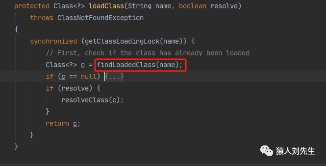 首先,检查一下指定名称的类是否已经加载过,如果加载过了,就不需要再加载,直接 返回。