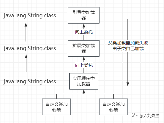 还有一个就是避免类重复加载,比如说刚刚的String类,每个加载器中都有一份,但是最终只会加载一次
