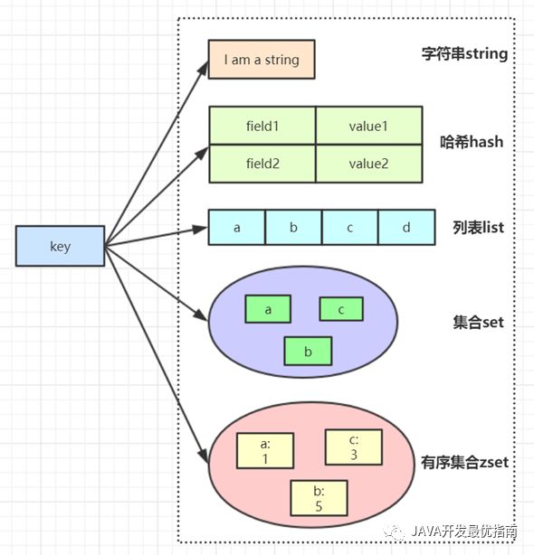 LPUSH key value [value ...] //将一个或多个值value插入到key列表的表头(最左边) RPUSH key value [value ...] //将一个或多个值value插入到key列表的表尾(最右边) LPOP key //移除并返回key列表的头元素 RPOP key //移除并返回key列表的尾元素 LRANGE key start stop //返回列表key中指定区间内的元素,区间以偏移量start和stop指定