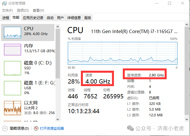 插电时 在基准CPU频率 2.8Ghz的CPU情况下