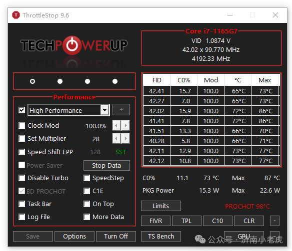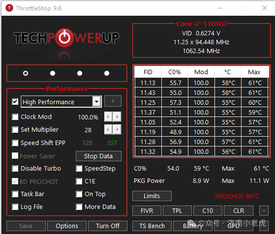 但是同时发现只要开着这个软件再把电源, 主频就不发生变化了.