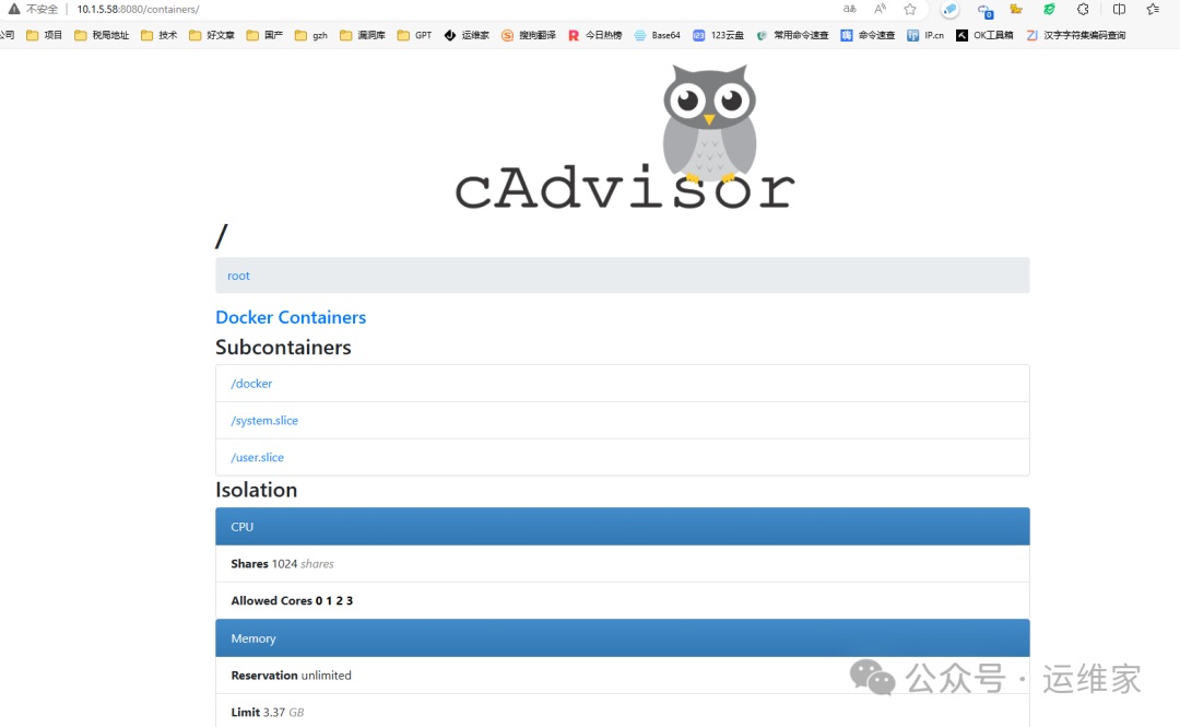 浏览器访问:http://10.1.5.58:8080/从这个地址可以访问到cadvisor服务的界面,如下: