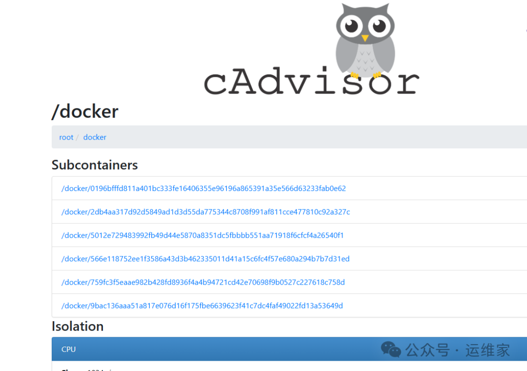 CAdvisor是谷歌开发的用于分析运行中容器的资源占用和性能指标的开源工具。CAdvisor是一个运行时的守护进程,负责收集、聚合、处理和输出运行中容器的信息。