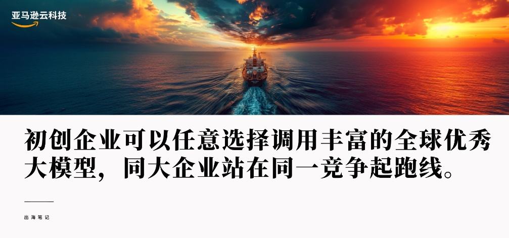 亚马逊云科技中国区初创及通用业务总经理倪殿令认为,初创企业出海需要做好借力,借“大船”出海,才能快速在海外实现从产品力到品牌力的建设。亚马逊云科技正通过创新技术、亚马逊全球资源网络、合作伙伴生态三重助力,让国内初创企业的出海有“船”可乘,有力可借。