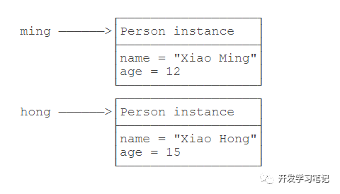 上述代码创建了一个Person类型的实例,并通过变量ming指向它。