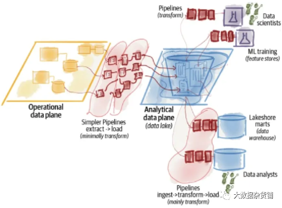 这种数据体系结构旨在改善数据仓库所需的大量前期建模的无效性和摩擦性。前置转换是一个障碍,会导致数据访问和模型训练的迭代速度减慢。