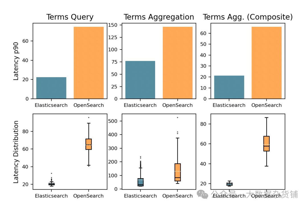 Elasticsearch 展示了其优越性,与 OpenSearch 相比,术语查询速度快 108%,复合术语聚合速度快 103%。这些优势使 Elasticsearch 成为涉及数据分组和过滤的任务的更有吸引力的选择。