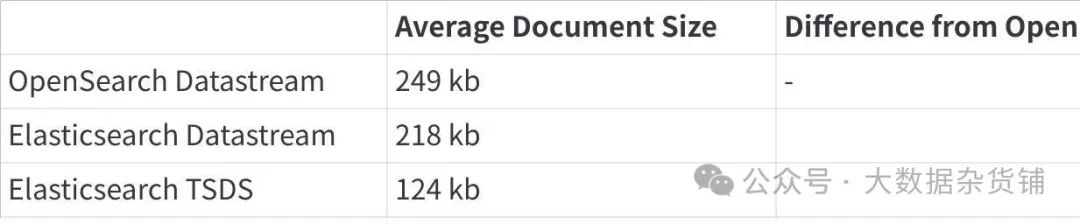 我们更进一步,将数据重新索引到时间序列数据流中,从而进一步压缩数据 - 平均文档大小从 218 kb 下降到 124 kb,减少了 **54.8%**,如下表所示。