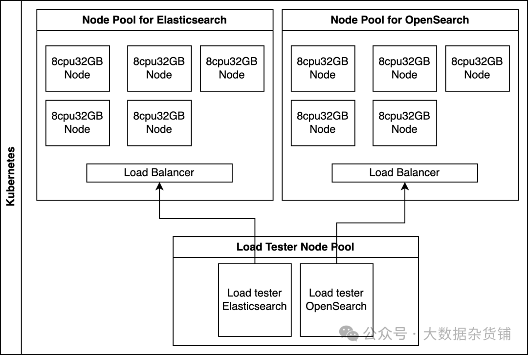 测试是在单独的 Kubernetes 节点池中完成的,确保每个产品都有专用资源。我们遵循 Elasticsearch 和 OpenSearch 的最佳实践,包括在发起查询之前强制合并索引以及防止缓存请求影响的策略,从而确保测试结果的完整性。