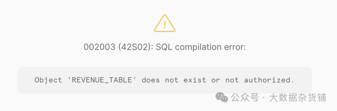 不可避免地,当我们尝试运行它时,我们会遇到错误,因为它虚构了表名,因为我们没有提供它 -