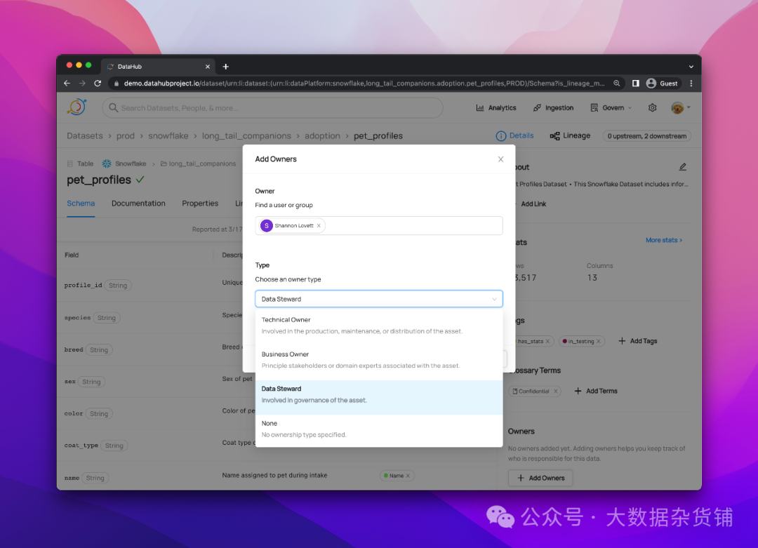 ·通知:当 DataHub 上发生更改时生成组织特定的通知。例如,当“PII”标签添加到任何数据资产时,向治理团队发送电子邮件。