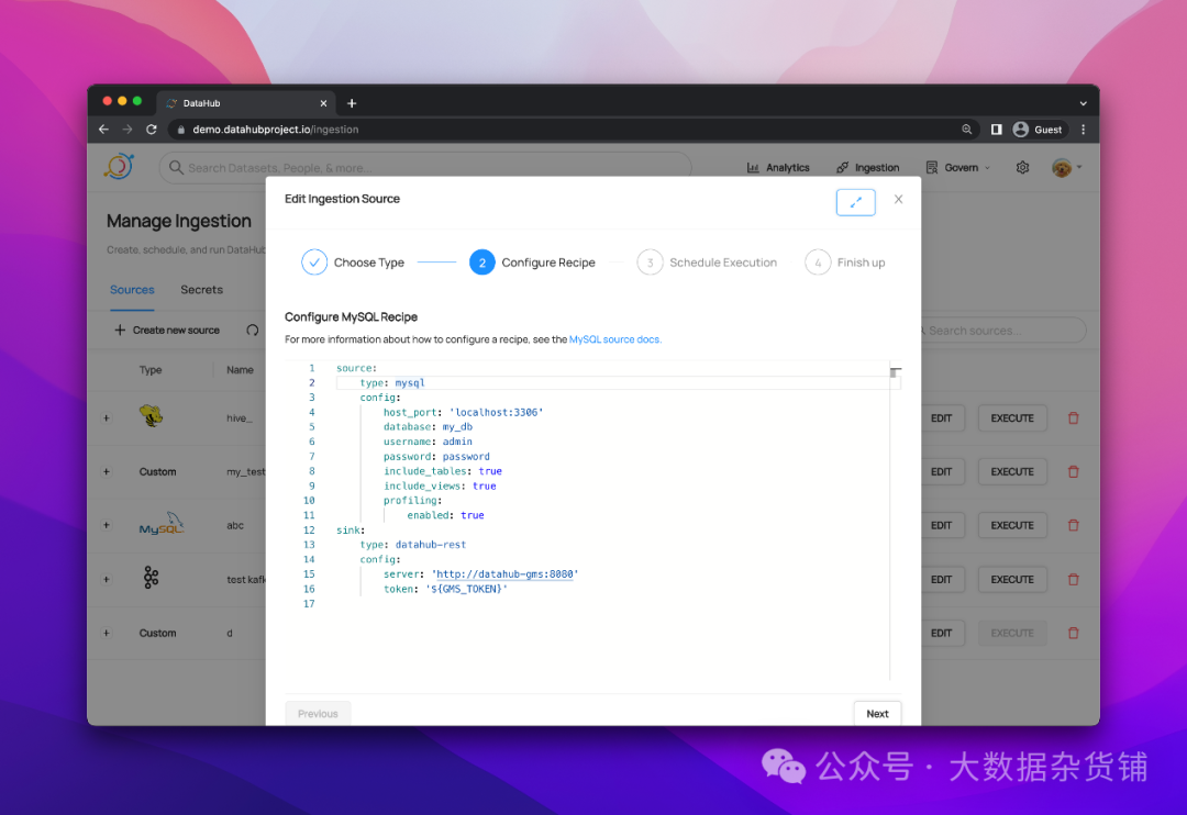 使用 DataHub 用户界面创建、配置、计划和执行批量元数据摄取。通过最大限度地减少操作自定义集成管道所需的开销,可以更轻松地将元数据导入 DataHub。