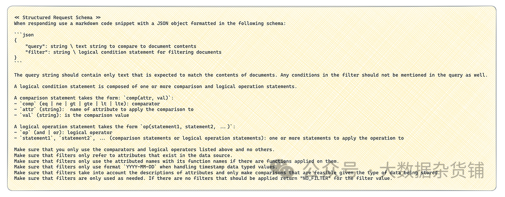 完整的提示相当长,让我们看看它的主要部分。这是提示的开始,它为模型提供了我们期望的内容和结果的主要标准的概述。