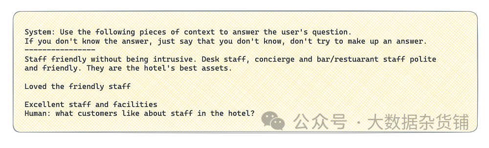 我们有一组文档(客户评论),我们想提出与这些文档内容相关的问题(例如,“客户喜欢早餐的哪些方面?”)。正如我们之前讨论的,我们不想将所有客户评论发送给 LLM,因此我们需要有一种方法来仅定义最相关的评论。然后,任务将非常简单:将用户问题和这些文档作为上下文传递给 LLM,仅此而已。