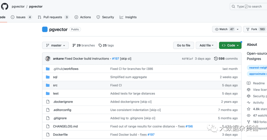 pgvector 是一个用于搜索向量相似度的 PostgreSQL 扩展。您还可以使用它来保留嵌入。最终,pgvector 可以帮助您将所有应用程序数据存储在一个位置。