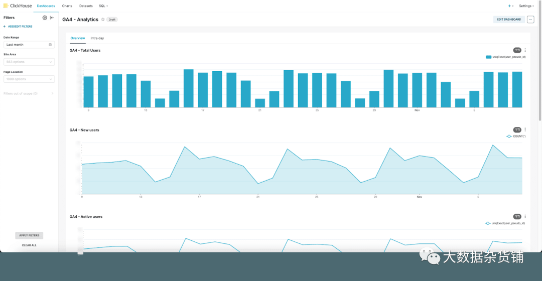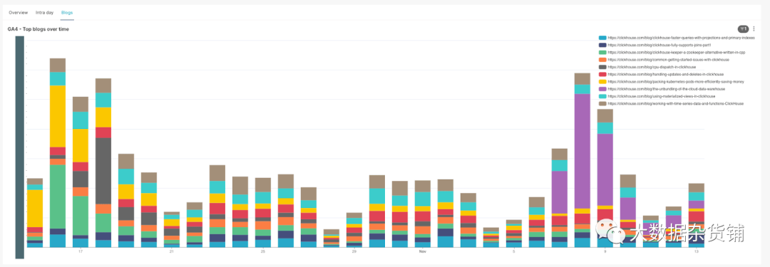 报告博客性能很快就成为我这个月最害怕的一天。虽然 Google Analytics 有其优势,尤其是易于集成和使用,但很明显它在许多关键方面受到限制:数据保留、采样、性能和灵活性。我们没有在 GA4 中辛苦劳作,也没有担心每个月的第二个星期一,而是开展了一个项目,将所有 Google Analytics 数据转移到 ClickHouse,目的是提供灵活、快速的分析并无限保留。