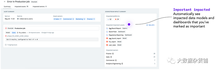 查看事件的重要受影响数据模型和仪表板的示例。来源:synq.io哪些数据对业务至关重要