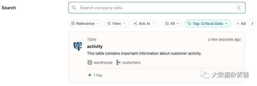 标记关键数据。资料来源:secoda.co根据关键程度采取行动